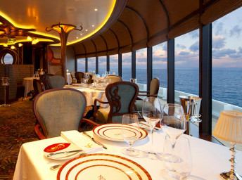 Zařízení kajut: dvoulůžková queen postel (matrace Posturepedic Sealy, ložní prádlo z egyptské bavlny), skříň, koupelna se sprchou, vanou a WC, vysoušeč vlasů, kosmetika H20 + spa (šampon, kondicionér a tělové máslo), obývací část se sofa a stolkem, oddělitelná závěsem, 22 palcová plochá Tv, bezpečnostní schránka, telefon s přímou linkou, zrcadlo, regulovatelná klimatizace.