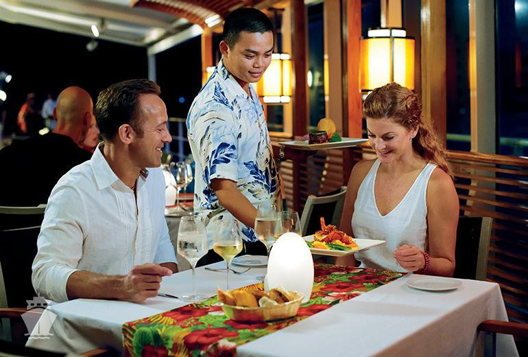 Full entertainment program including Polynesian artists, musical entertainment, a pianist, and a professionally operated casino with slot machines