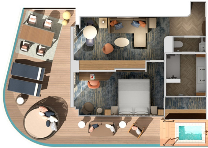 | HE - Kajuta Havana Cabana s patiom 26 m² / vnější patio 8 m². Tropický styl, vstup do exkluzivní zóny Havana. | 37 419 Kč 18 710 Kč za osobu |