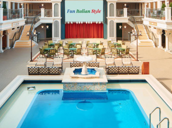 - plná penze v hlavních restauracích Main Dining Room, v 24/7 bufetových restauracích Lido a v 24/7 pizzerii