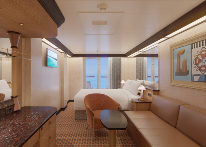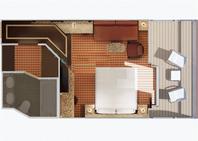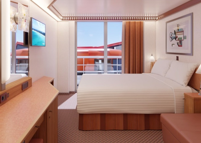 Základní vybavení všech kajut: koupelna se sprchou a WC, TV, telefon, zásuvka 110 AC, regulovatelná klimatizace, postele Carnival Comfort, vysoušeč vlasů, trezor, minibar.