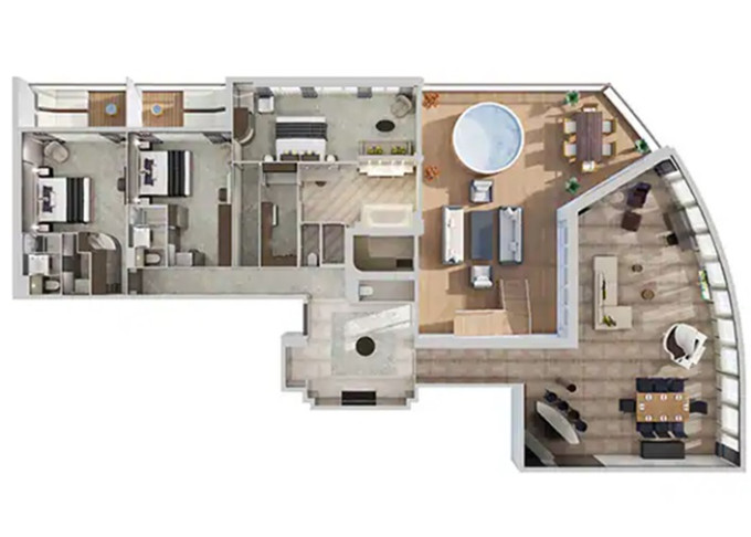 | H1 - The Haven Garden Villa - 3 ložnice 216 m² / balkon 96 m². Výhody The Haven. 14. paluba - střed. Max osoby. | 1 760 169 Kč 880 085 Kč za osobu |