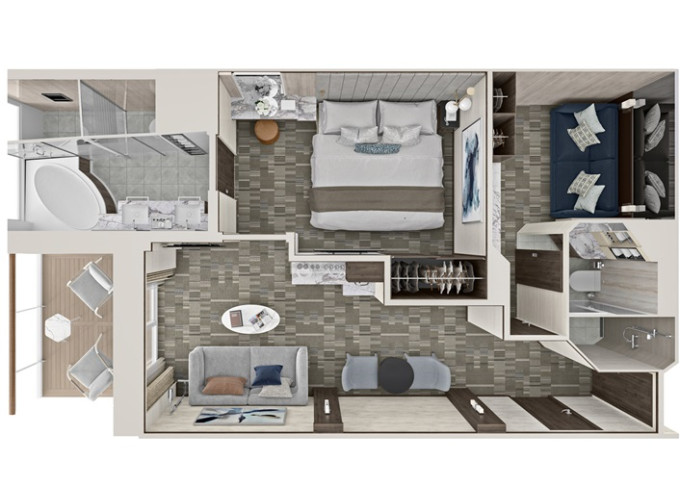| MA - Club Suite s balkonem 22-29 m² / balkon 5-7 m². Výhody Club. 12/13/14. paluba - střed. Max 3 osoby. | 69 862 Kč 34 931 Kč za osobu | ||