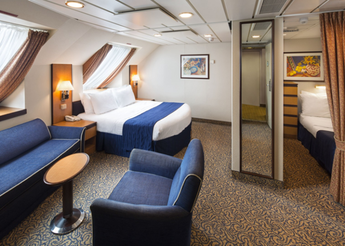 | J3 - Junior Suite s balkonem 28 m² / balkon 6 m². Výhody Royal Suite Class. 10. paluba. Max 4 osoby. | 128 367 Kč 64 183 Kč za osobu | ||