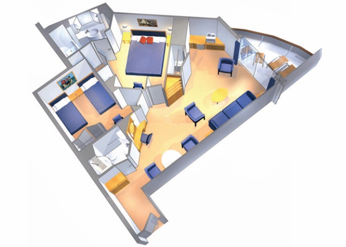 | GT - Grand Suite s balkonem / 2 ložnice 51 m² / balkon 8 m². Výhody Royal Suite Class. 10. paluba. Max 8 osob. | 260 884 Kč 86 961 Kč za osobu | ||