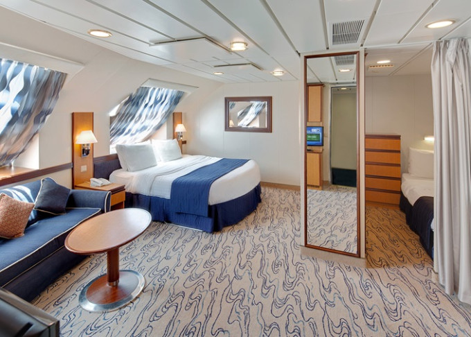 | VT - Ocean View Suite / 2 ložnice (bez balkonu) 55 m². Velké neotevíratelné okna. Výhody Royal Suite Class. 10. paluba. Max 8 osob. | 138 379 Kč 138 379 Kč za osobu |