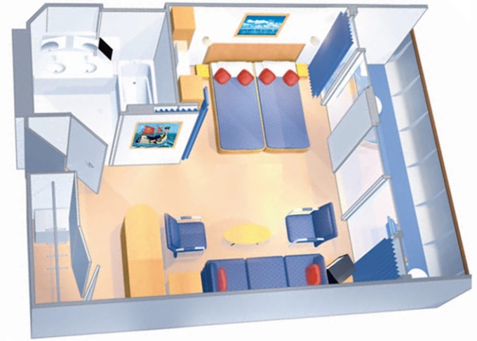| 1K - Velká kajuta s oknem Ultra Spacious 29 m². Neotevíratelné okno. 7/8. paluba. Max 6 osob. | 91 325 Kč 22 831 Kč za osobu |