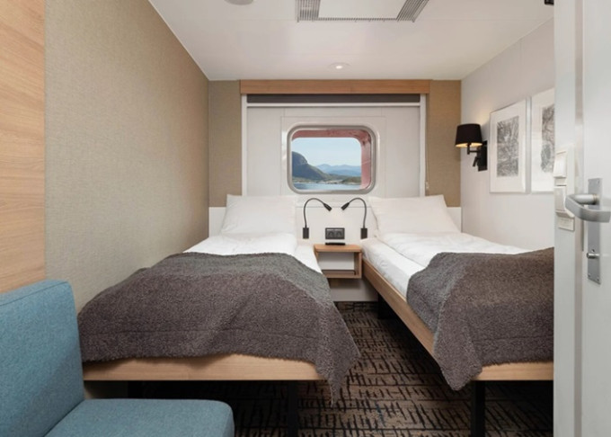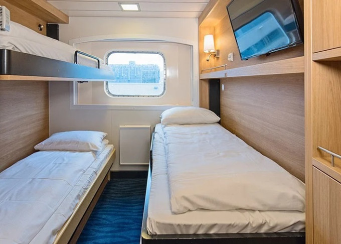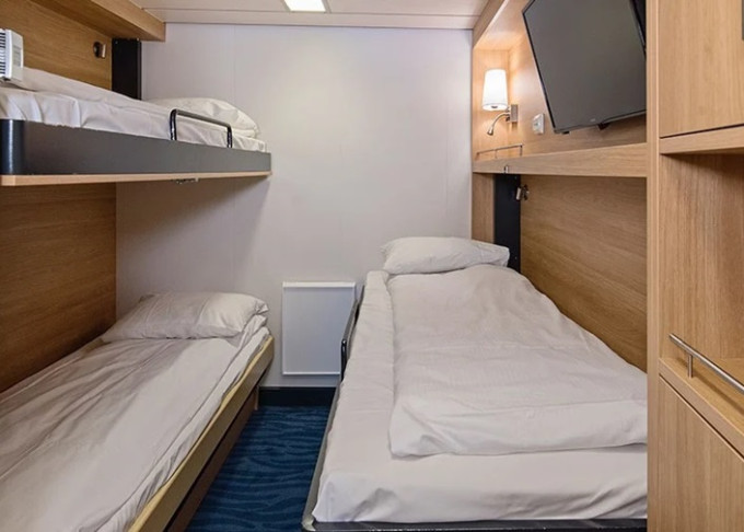 | J3 - Vnější kajuta Polar 8-11 m². Neotevíratelné okno s omezeným výhledem. Max 3 osoby. | 109 564 Kč 54 782 Kč za osobu | ||