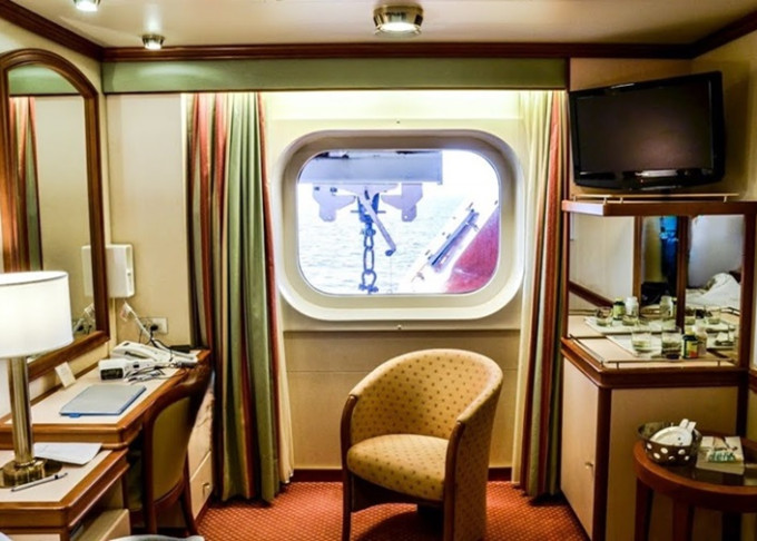 OV - Vnější kajuta / omezený výhled 16 m². Neotevíratelné okno s omezeným výhledem. Max 2-4 osoby. 70 357 Kč 35 179 Kč za osobu
