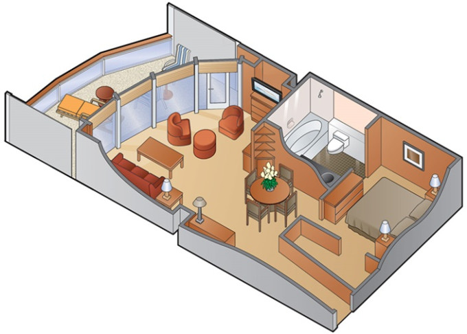 | RS - Royal Suite 52 m² + balkon s vířivkou 18 m² . Koupelna s vířivkou. 6. paluba. Max 3 osoby. Výhody Suite. | 778 610 Kč 778 610 Kč za osobu |