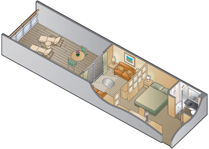 - kajuty umístěné v blízkosti Spa areálu s luxusním vybavením (exkluzivní ložní prádlo, posílená vzdušná filtrace, velkorysé úložné prostory aj.)