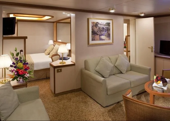 S6 - Vista Suite s balkonem 45 m² (včetně balkona). Výhody Suite. Max 3-4 osoby (gauč + horní lůžko). 217 797 Kč 108 898 Kč za osobu