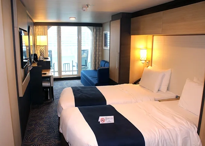 4U - Vnitřní kajuta s virtuálním balkonem 15 m². Obrazovka velikosti balkonových dveří s promítaným výhledem. 7. až 13. paluba. Max 2-4 osoby. 50 556 Kč 25 278 Kč za osobu
