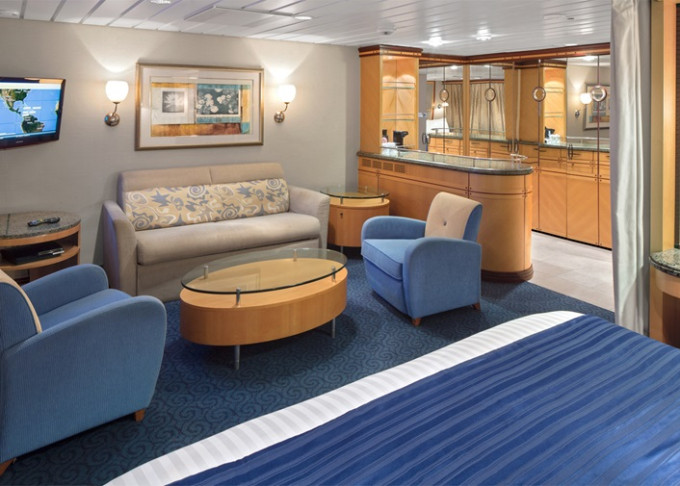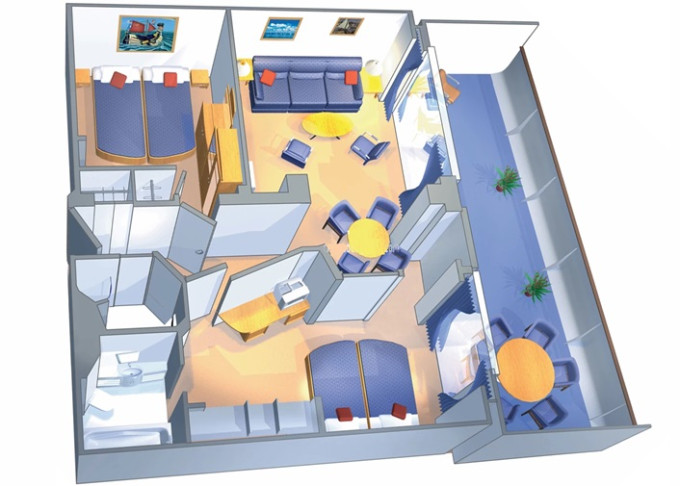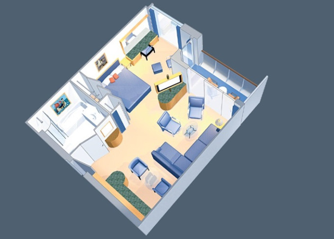 | VP - Ocean View Panoramic Suite (bez balkonu) 37 m². Panoramatické neotevíratelné okna. Výhody Royal Suite Class. 12. paluba. Max 6 osob. | 181 299 Kč 60 433 Kč za osobu |