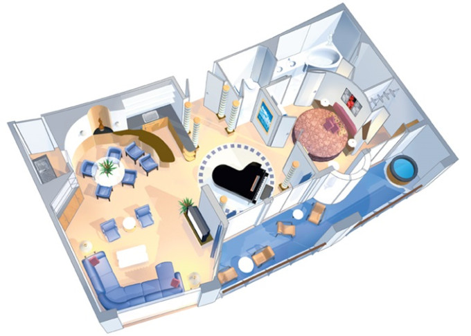 | OS - Owner’s Suite s balkonem 47 m² / balkon s vířivkou 6 m². Výhody Royal Suite Class. 10. paluba. Max 4 osoby. | 313 641 Kč 78 410 Kč za osobu | ||