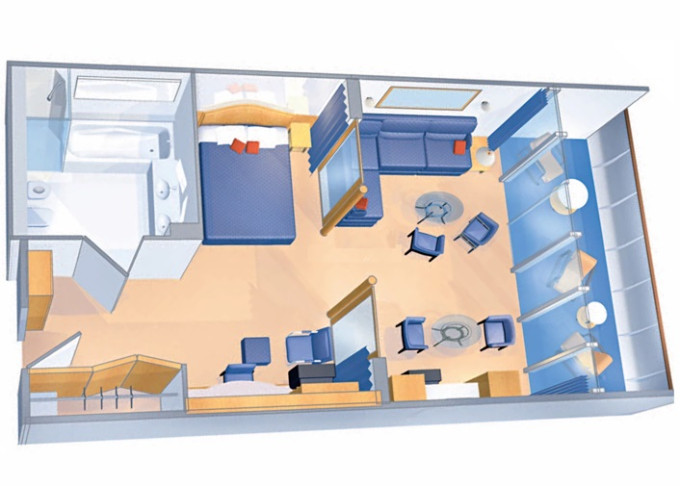 | RS - Royal Suite s balkonem 104 m² / balkon 14 m². Výhody Royal Suite Class. Koupelna s vířivkou. 8. paluba. Max 4 osoby. | 283 879 Kč 94 626 Kč za osobu | ||