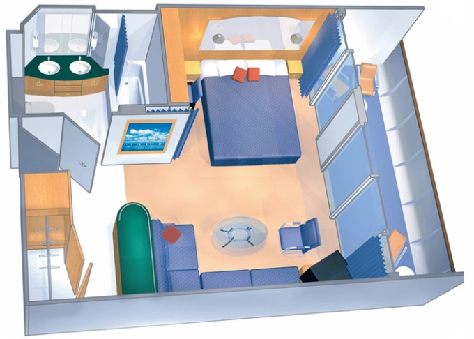 | 1K - Velká vnější kajuta Ultra Spacious 56 m². Neotevíratelné okno. 8. paluba. Max 8 osob. | 85 947 Kč 42 973 Kč za osobu |