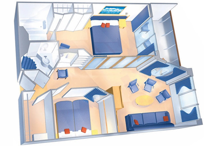 | RS - Royal Suite s balkonem 104 m² / balkon 14 m². Výhody Royal Suite Class. Koupelna s vířivkou. 8. paluba. Max 4 osoby. | 260 642 Kč 130 321 Kč za osobu | ||