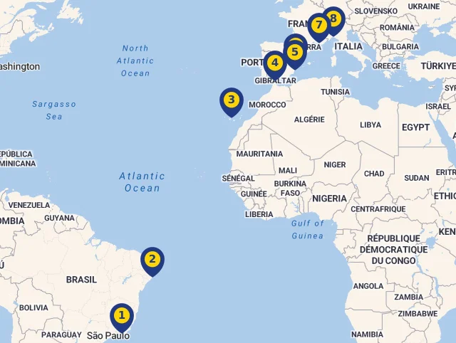 Poznejte místa, kde Vaše loď během plavby zakotví! Každá zastávka je označena číslem, které odpovídá její pozici na mapě, abyste mohli snadno sledovat celou trasu. Stačí kliknout na vybranou destinaci a zjistíte více o každé z nich. Pro lepší přehled si můžete celý program plavby prohlédnout přímo na mapě.