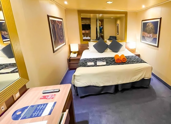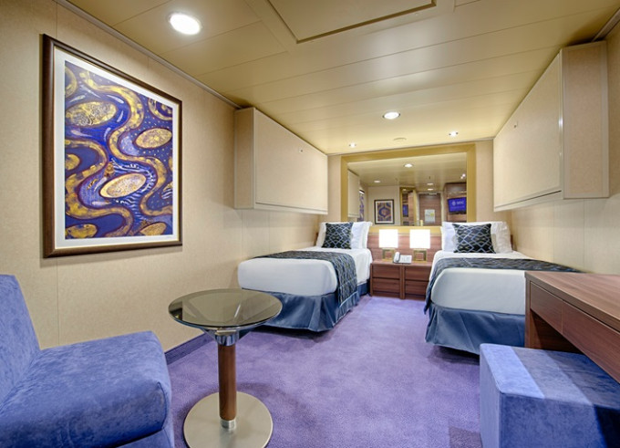 Kajuta vnitřní: 13 - 16 m², kajuta s manželskou postelí (na požádání 2 oddělené postele) a 1-2 vyklápěcí horní lůžka. Klimatizace, koupelna se sprchou a WC, toaletní stolek, skříň, interaktivní TV, sejf, telefon, vysoušeč vlasů.