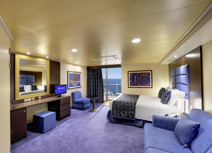 Kajuta s balkónem: 17 - 26 m², kajuta s manželskou postelí (na požádání 2 oddělené postele) a rozkládací pohovka. Klimatizace, koupelna se sprchou nebo vanou a WC, toaletní stolek, prostorná skříň, interaktivní TV, telefon, sejf, vysoušeč vlasů. Balkony se stolkem a židlemi. Některé kajuty mají omezený výhled.