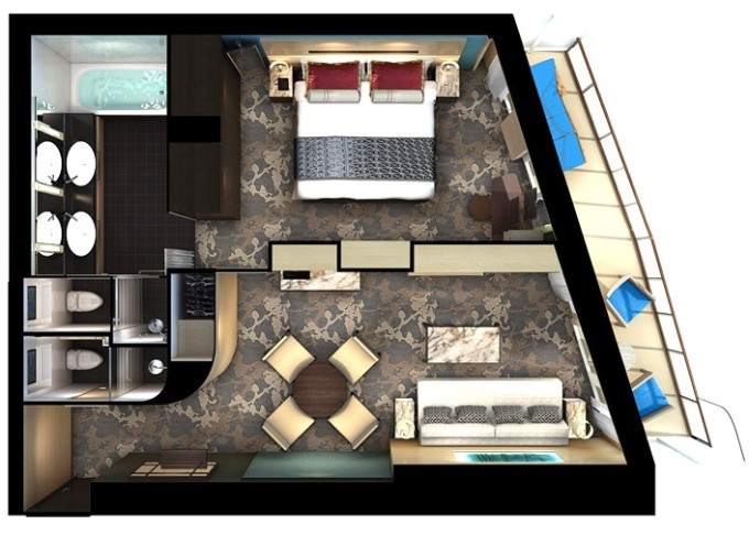 | HJ - The Haven Suite s balkonem 35 m² / balkon 6 m². Výhody The Haven. 14. paluba - střed. Max 4 osoby. | 94 505 Kč 47 253 Kč za osobu | ||