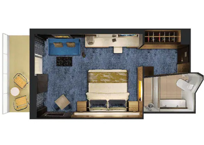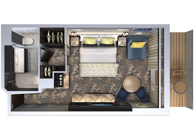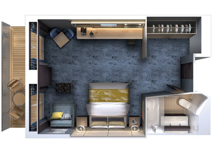 | B1 - Kajuta s balkonem Aft-facing od 20 m² / balkon 4-5 m². 9. až 15. paluba. Max 2-3 osoby. | 26 434 Kč 13 217 Kč za osobu | ||