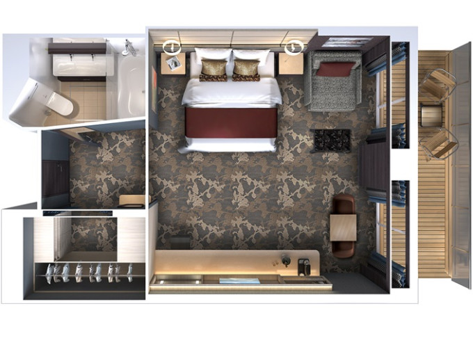 | HG - The Haven Forward-Facing Penthouse 39-43 m² / balkon 3-4 m². Výhody The Haven. 9. až 13. paluba - vpředu. Max 3-4 osoby. | 101 710 Kč 50 855 Kč za osobu | ||