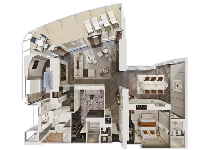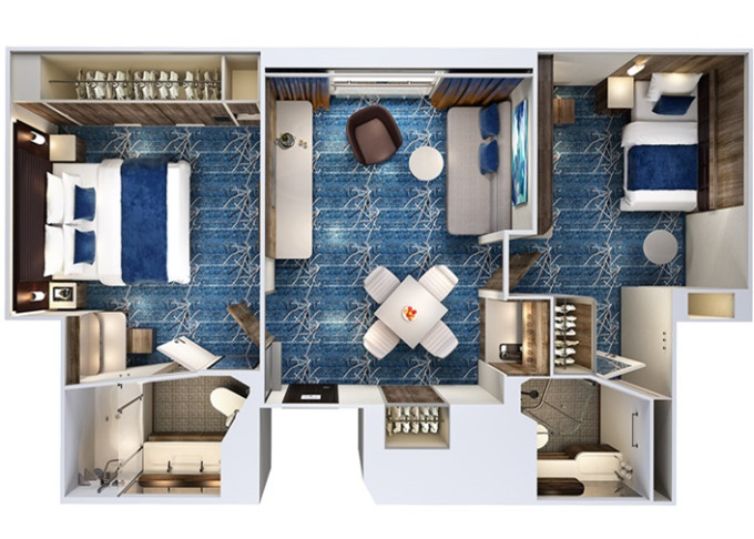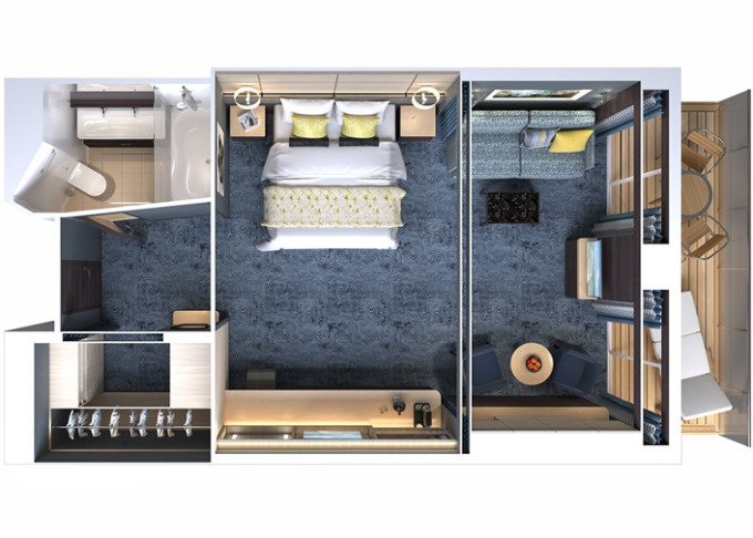 | HH - The Haven Family Villa Suite 47 m² / balkon 8 m². Výhody The Haven. 15. paluba - vpředu. Max 5 osob. | 102 703 Kč 51 352 Kč za osobu | ||