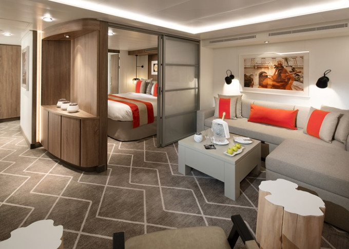 - kajuty umístěné v blízkosti Spa areálu s luxusním vybavením (exkluzivní ložní prádlo, posílená vzdušná filtrace, velkorysé úložné prostory aj.)