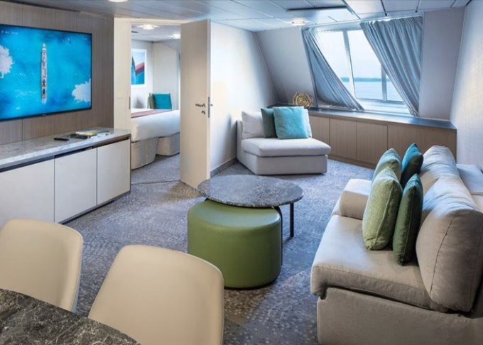 | PD - Deluxe Panoramic Ocean View Suite 34 m². Max 3 osoby. 12. paluba vpředu. Výhody Suite. | 275 689 Kč 91 896 Kč za osobu | ||