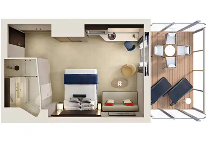| S8 - Owner's Suite min 62 m² / balkon min 15 m². Výhody Suite. | 343 887 Kč 171 944 Kč za osobu | ||