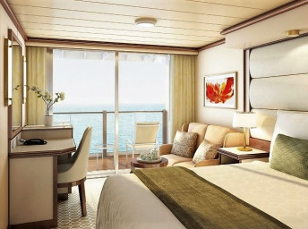 | DB - Kajuta s balkonem Deluxe 21 m² (včetně balkona). Max 3-4 osoby (gauč + horní lůžko). | 133 708 Kč 66 854 Kč za osobu | ||
