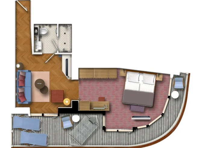 | SUSO - Übersee Suite 40 m² + balkon 9 m² s lehátky a houpací sítí. 14. paluba. Max 4 osoby. Výhody Suite. | 394 651 Kč 394 651 Kč za osobu | ||