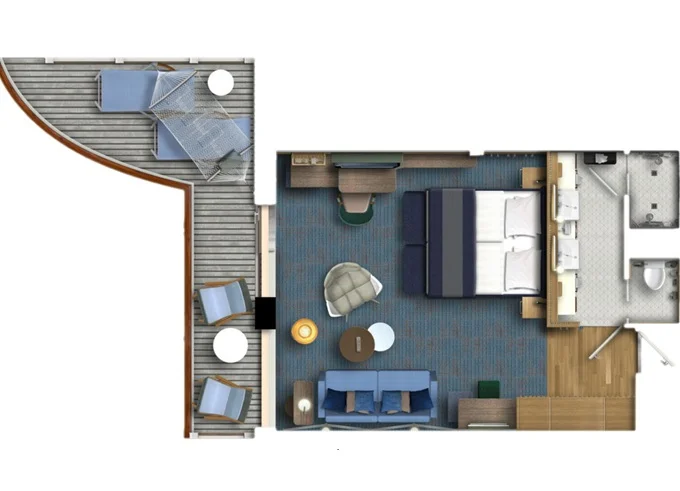 | JBAO - Junior Suite s balkonem 26 m² + balkon 7 m² se stolem. 10,11. paluba. Max 4 osoby. Výhody Junior Suite. | 349 822 Kč 116 607 Kč za osobu | ||