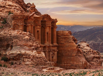 Vytesaná do červené skály jordánské pouště, antické město Petra (Al-Batra), přitahuje návštěvníky již od svého objevení v roce 1812. Přístupové údolí Siq Canyon, hluboké průrvy pískovce, poskytují velkolepé uvítání. Petra byla založena jako hlavní město království Nabataean, a dokonalost jejích kamenných budov se dá srovnat pouze s propracovaností a technickou pokročilostí získávání a přepravování vody. Vysoko nad městem, ve výšce únavného, 800 schodového výstupu, stojí klášter. Je méně známý, ale snad ještě působivější než budova Al-Khazneh. Při vstupu do Petry se platí poplatek.