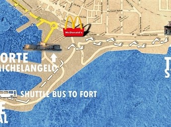 - placený shuttle bus od lodi k nádraží Civitavecchia stojí 6 EUR (cena k roku 2026)